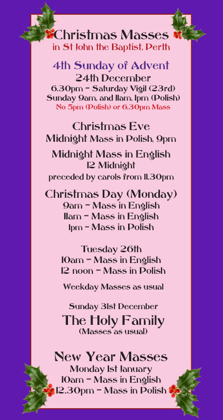 Christmas and New Year Masses Please share these Mass times with your friends and family. Share this Post