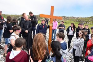 Staff and pupils from St John’s Academy, Perth, were joined by Mgr Martin Drysdale on their annual pilgrimage to Iona, home of St Columba – patron of Dunkeld Diocese. The group, led by Mr Frankie McGuire and Mrs Fiona Caroll, was met on the shore of Columba Bay by young people from the Diocese of Argyll and the Isle who handed over the Scottish Youth Cross to the Dunkeld Pilgrims who carried it back to the Abbey for the celebration of Mass.