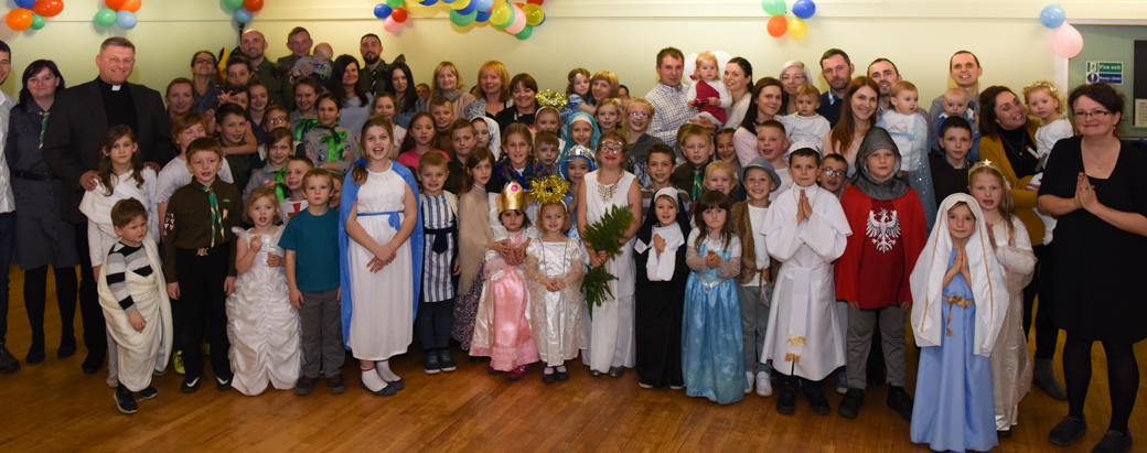 Fr Bogdan Palka invited all families to join in an All Saints’ Ball. Says Fr Bogdan, “We invited the children to dress up as either their holy namesake or their favourite saint. It was the evening of before the season of All Saints, so All Hallows ‘E’en’. There was a great festival of traditional song and dance. The youngest ‘angels’ attending the party were just one year old!”